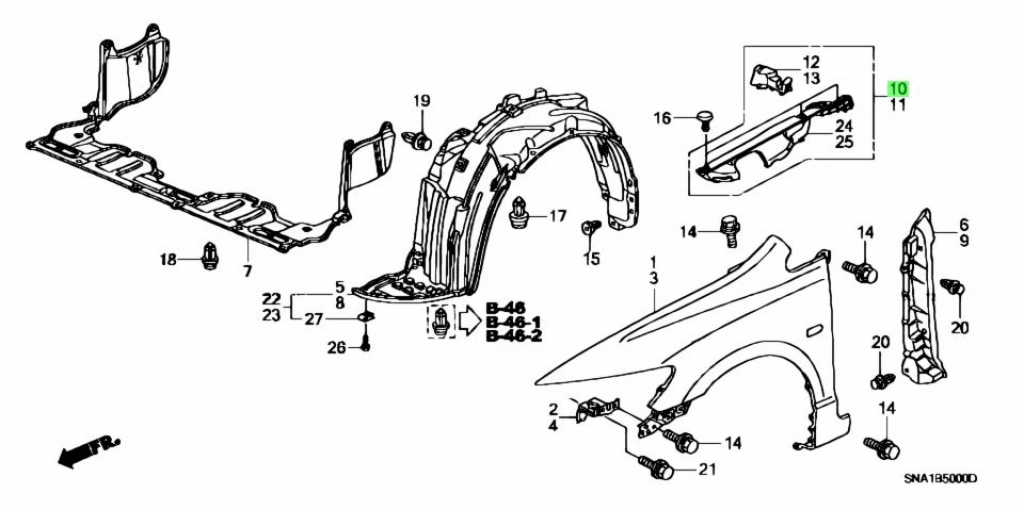 Bakalit Çamurluk Civic Ön Üst 2006-2011 Sağ Fd6 (Oem No:74206Snaa00)