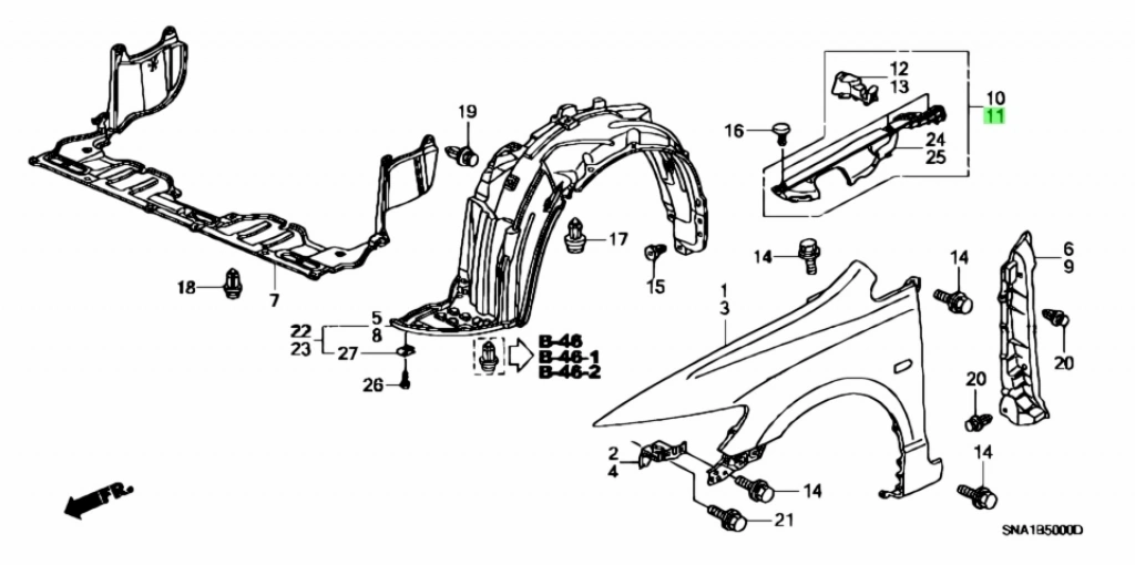 Bakalit Çamurluk Civic Ön Üst 2006-2011 Sol Fd6 (Oem No:74207Snaa00)