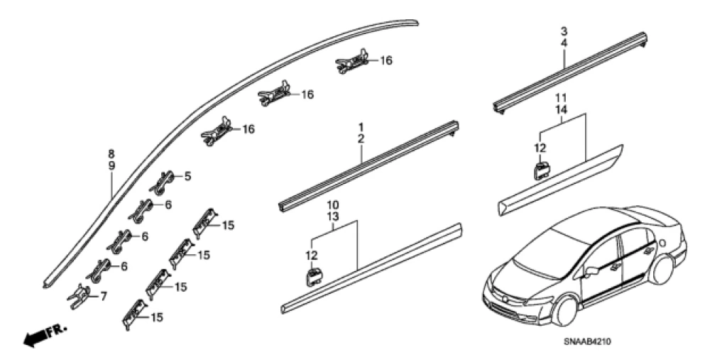 Kelebek Camı Çıtası Civic 2006-2012 Ön Sağ Fd6 (Oem No:73335Sna003)
