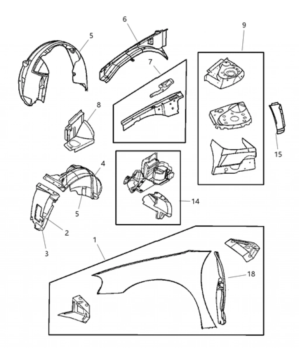 Chrysler Stratus- 2001-2004; Ön Çamurluk Deliksiz Sol Sedan Oem No: (5018849Ab)