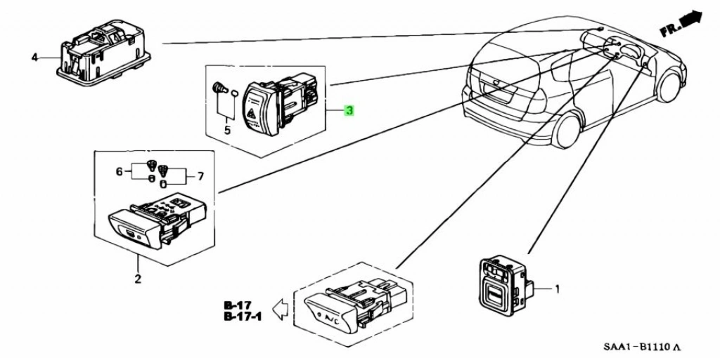 Dörtlü Flaşör Düğmesi Jazz / City 2002-08 (Oem No:35510Saa003)