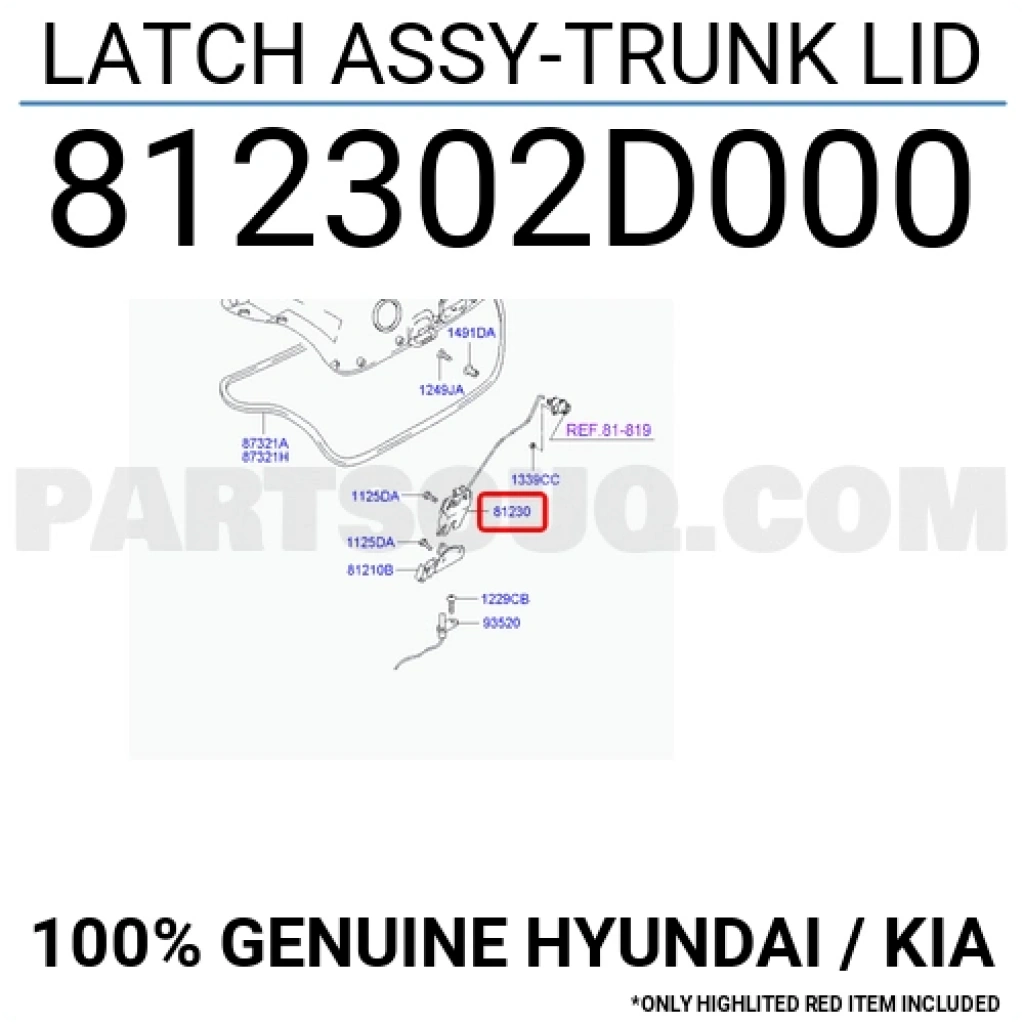 Elantra 2001 2003 Bagaj Kilidi (Oem No:812302D000)
