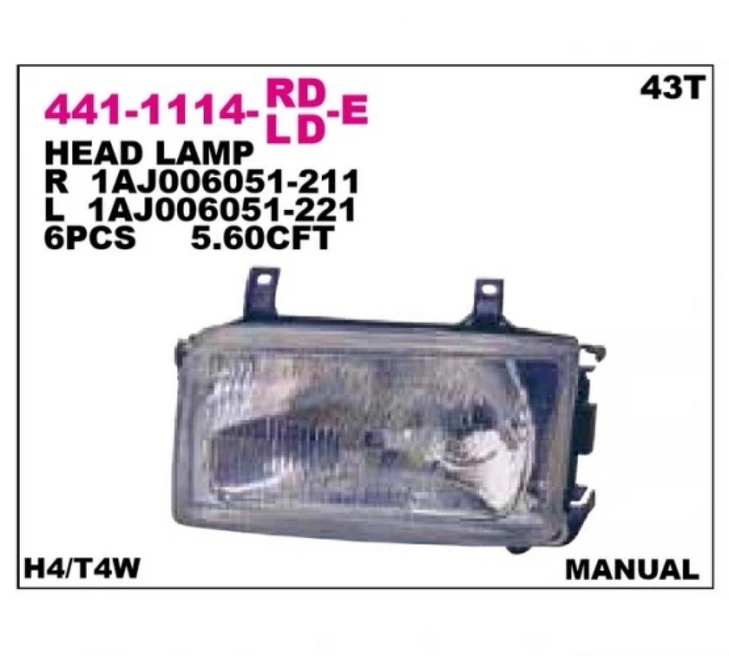 volkswagen transporter- t4- 2002-2003 far lambası sağ manuel/elektrikli (h4)(caravelle) Oem No (7D1941010H)