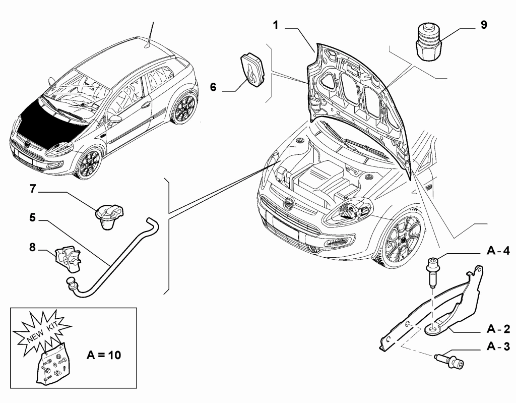 Fiat Grande Punto Motor Kaputu Montaj Kıtı 2006- 2009 (Oem No: 71751812)