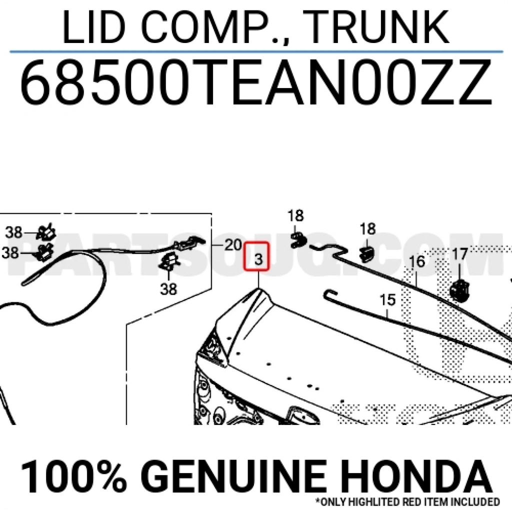 Honda Civic Fc5 Arka Bagaj Kapağı 2016- (Oem No: 68500Tean00Zz)