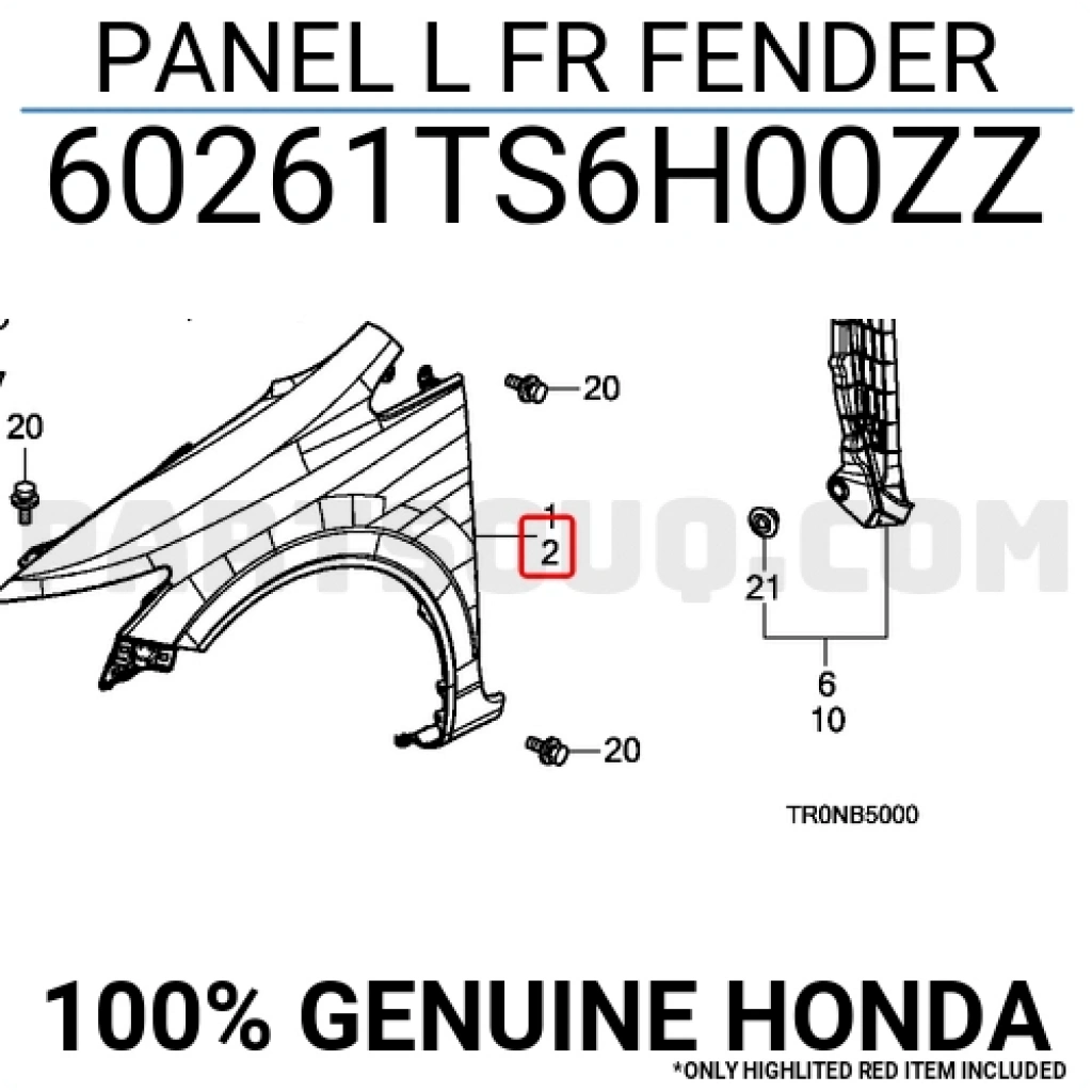 Honda Civic Ön Çamurluk Sol 2012- (Oem No: 60261Ts6H00Zz)
