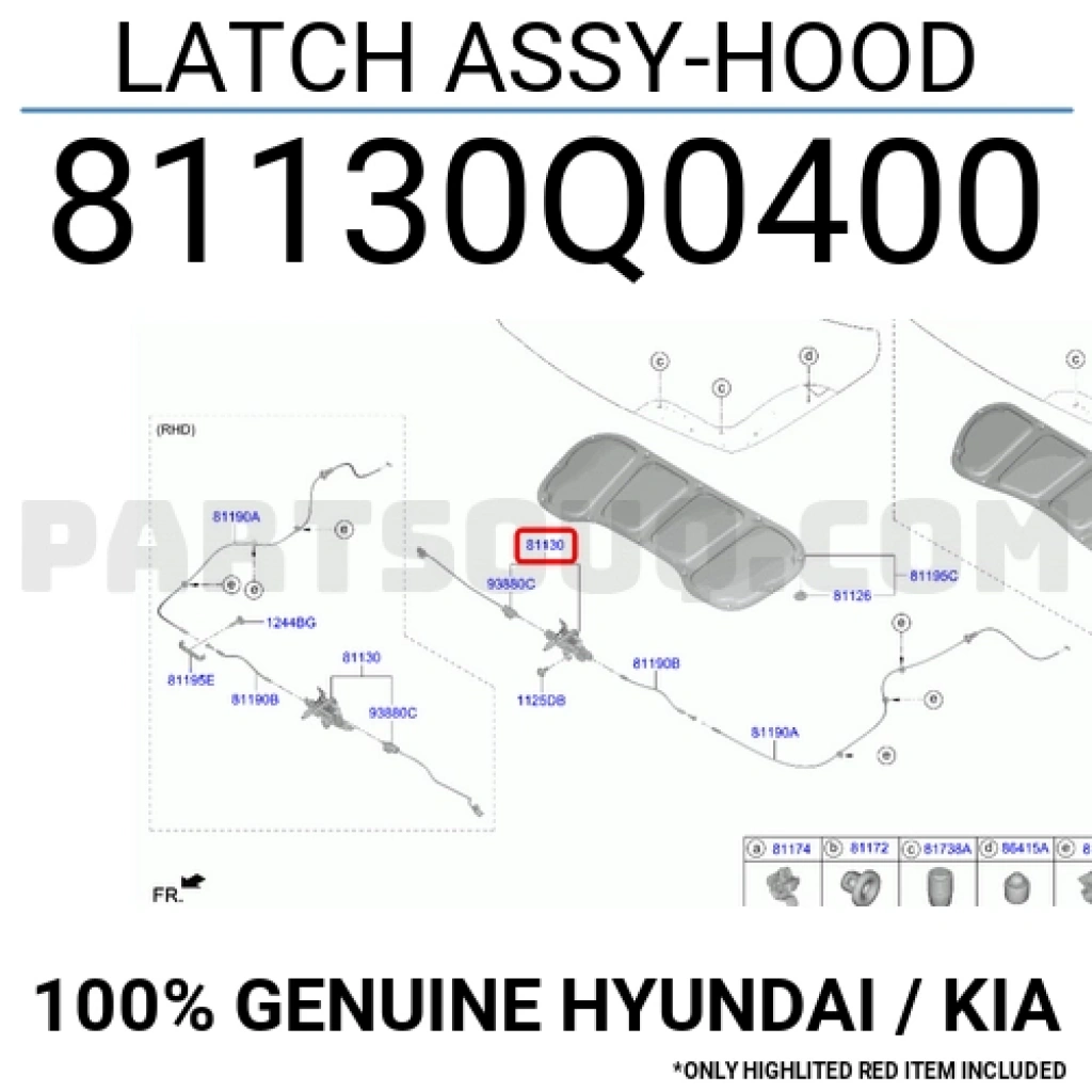 Hyundai i20 2021 sonrası kaput kilidi Oem No (81130Q0000)
