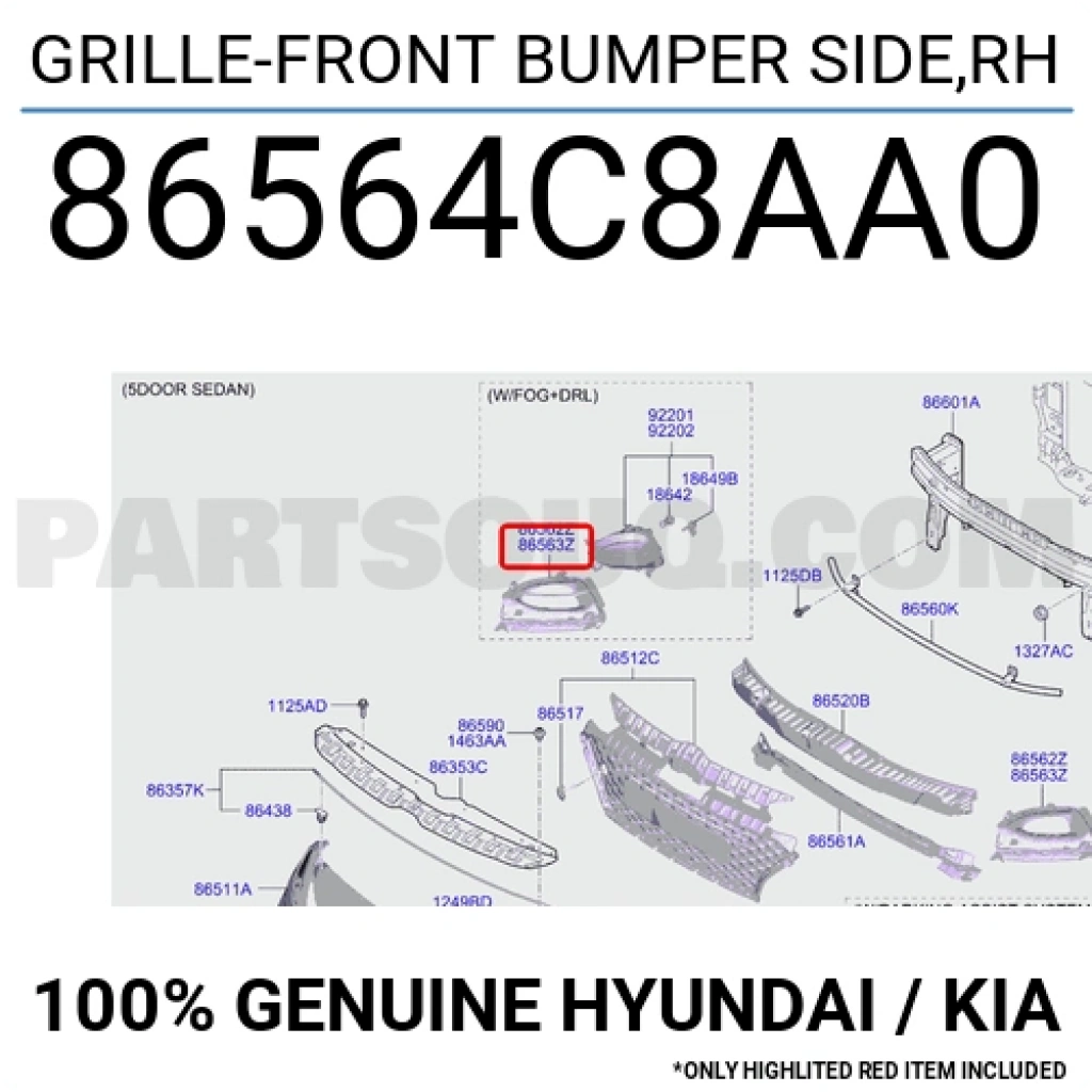 Hyundai İ20 Ön Sis Lamba Kapağı Sağ 2018-2020 (Oem No: 86564C8Aa0)