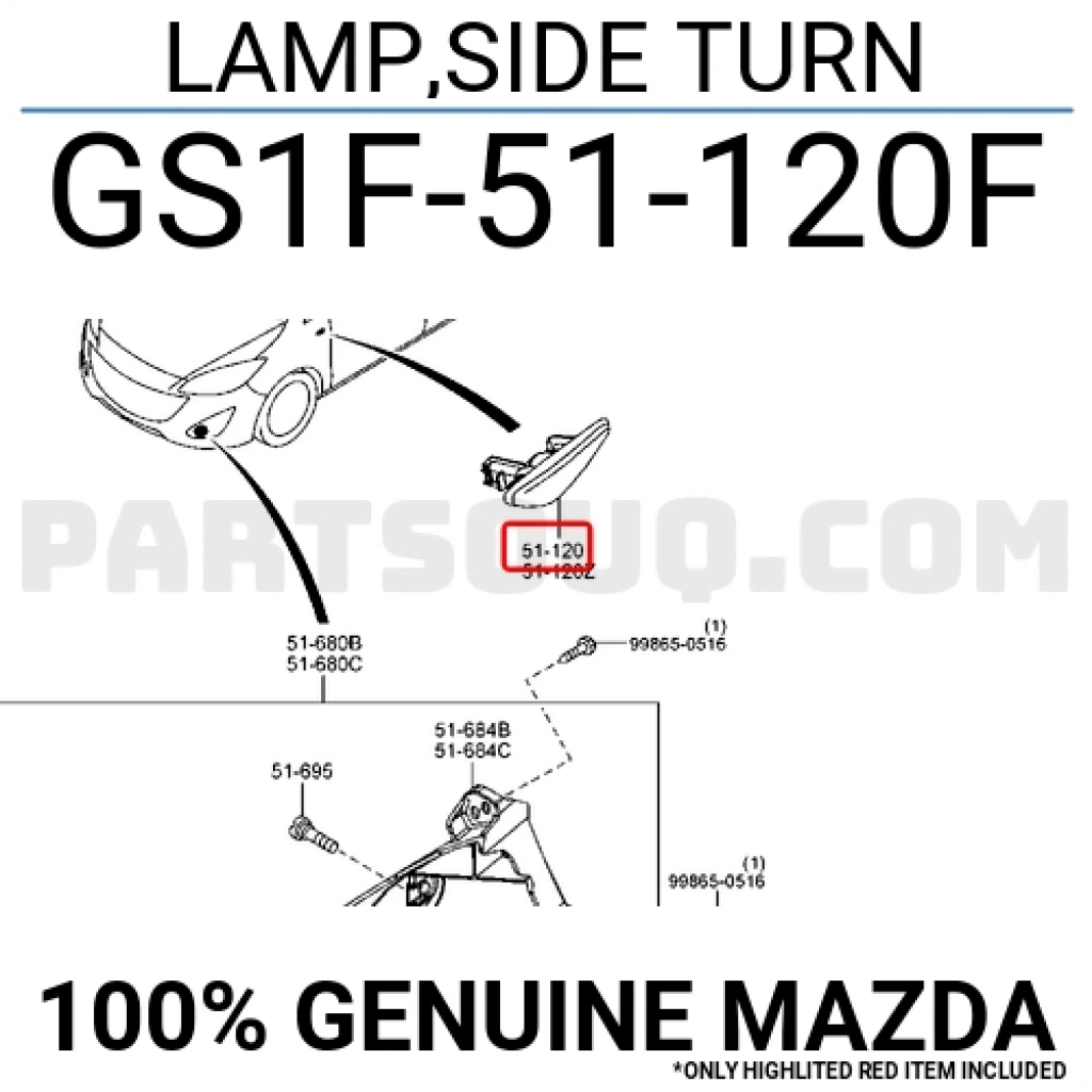 Mazda 6 Ön Çamurluk Sinyali Sağ 2009- (Oem No: Gs1F-51-120F)