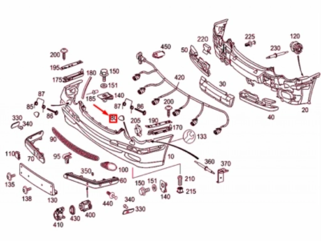 Mercedes S Class Ön Tampfar Yıkama Sensör Delikli Astarlı 2009- (Oem No: A22188059409999)