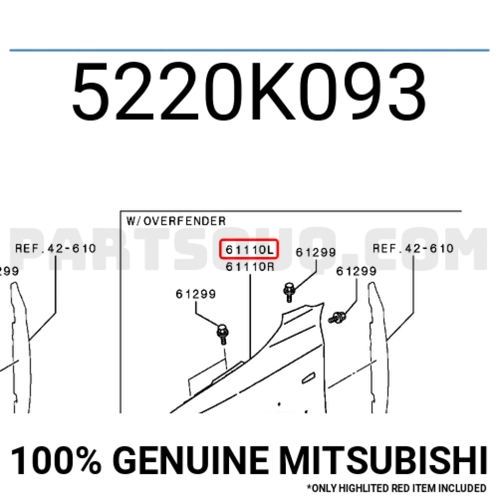 Mitsubishi L200 Ön Çamurluk Sinyal Delikli 4X2 Sol 2014- (Oem No: 5220K093)