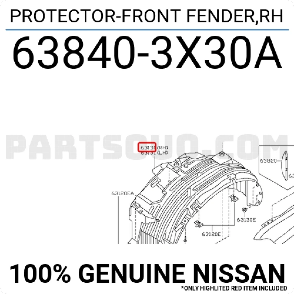 Nissan Navara Ön Çamurluk Davlumbazı 4X4 Sağ 2006-2014 (Oem No: 638403X30A)