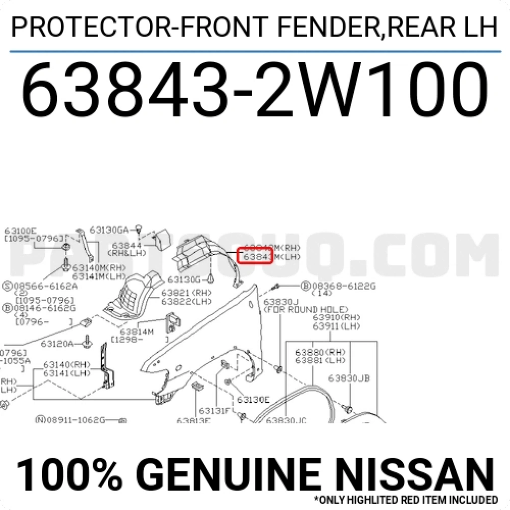 Nissan Pathfinder Ön Çamurluk Davlumbazı Arka Parça Sol 1999-2004 (Oem No: 638432W100)