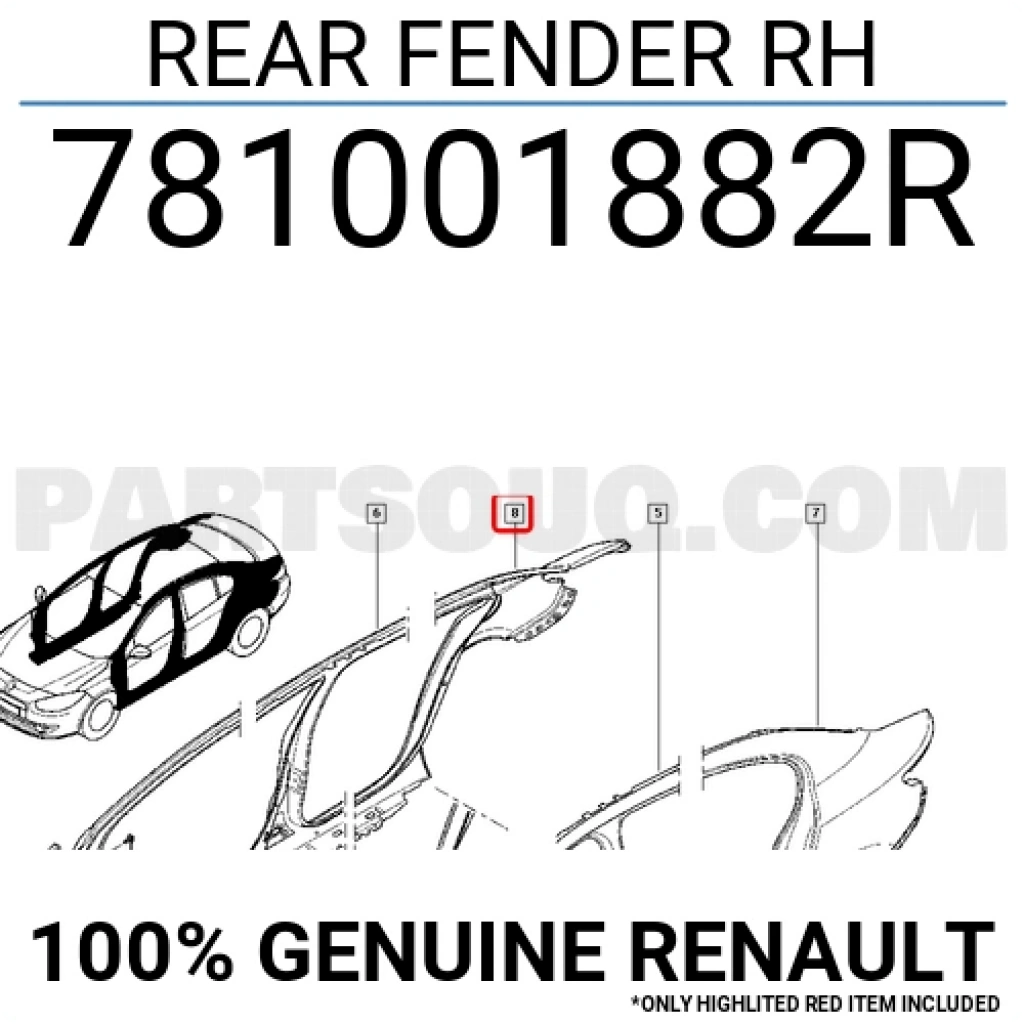 Renault Fluence 2009- Arka Çamurluk Sağ Oem No (781001882R)