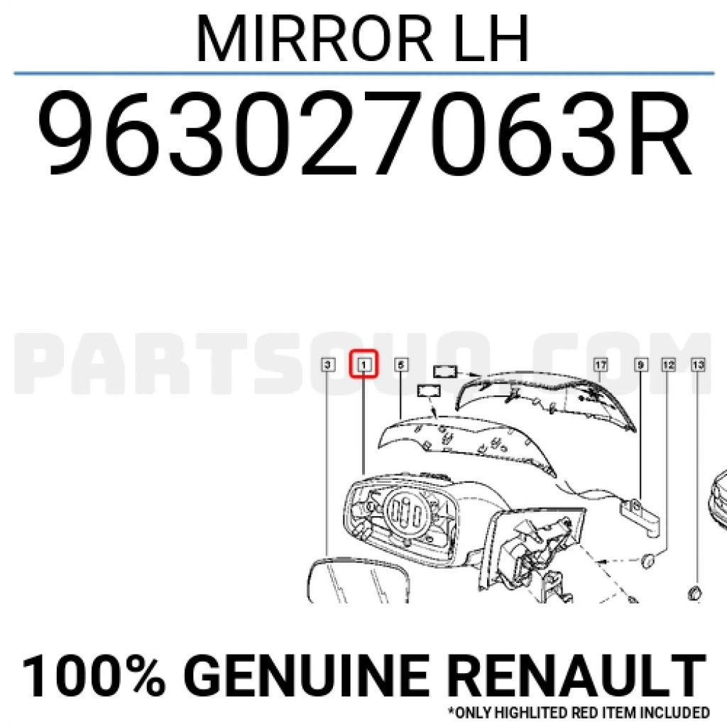 Renault Megane/Fluen Ayna Elektrikli Isıtmalı Sıinyalli Sensörlü 9 Pin Sol 2009- (Oem No: 963027063R)