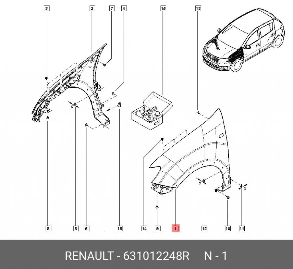 Renault Symbol Ön Çamurluk Sol 2012- (Oem No: 631012248R)