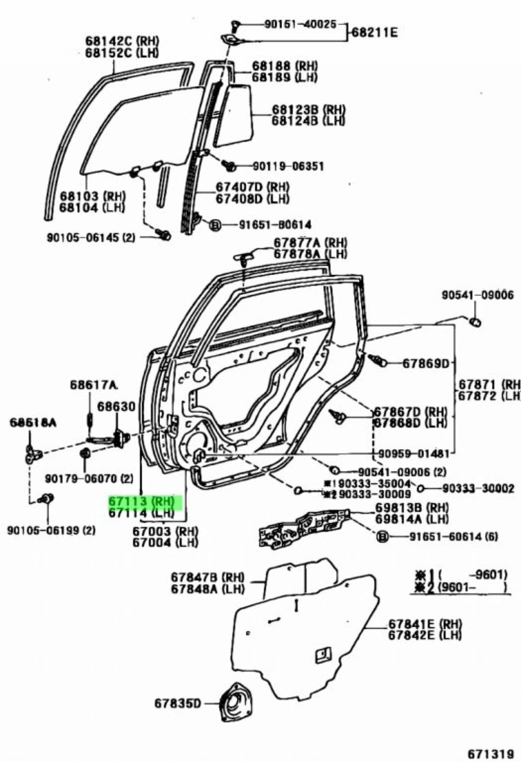 TOYOTA CARINA- 1997--1998 ARKA KAPI SACI SAĞ Oem No: (67113-20210)