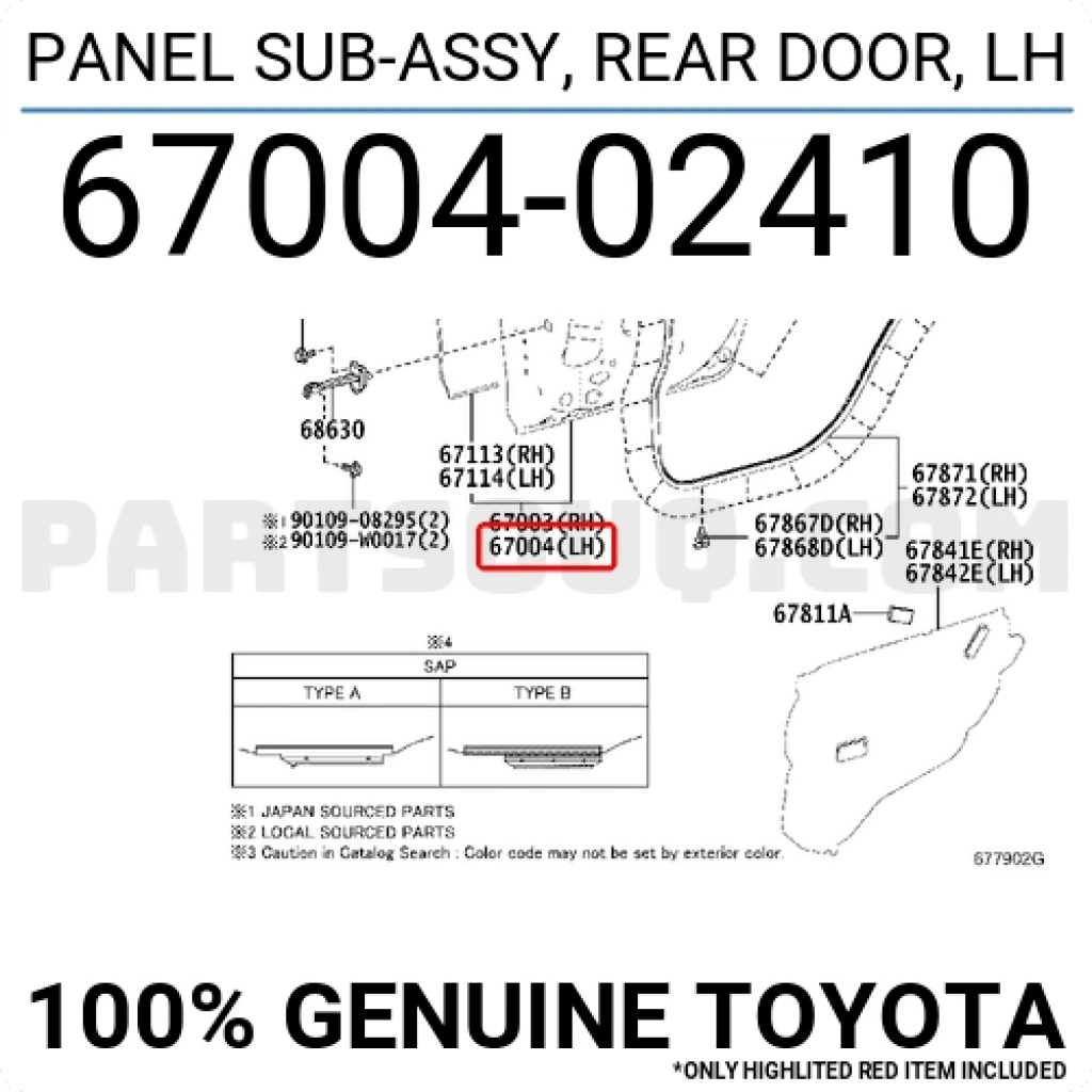 Toyota Corolla Arka Kapı Sol 2013- (Oem No: 6700402410)