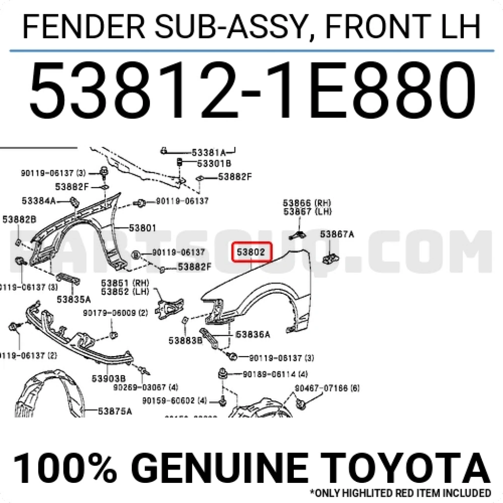 Toyota Corolla Ön Çamurluk Sol 2001 2002- (Oem No: 538121E880)