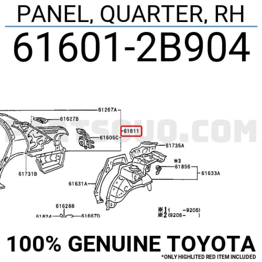 Toyota Corona Arka Çamurluk Sdn. Sağ 1993--1997 (Oem No: 616012B904)