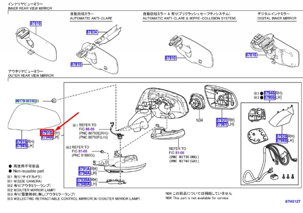 Toyota Rav 4 Ayna Elektrikli Isıtmalı Sinyalli Otom. Katlanır Kamera Çevre Ay.Kör Nokta Uyarı Sağ 2019- (Oem No: 8791042F40)