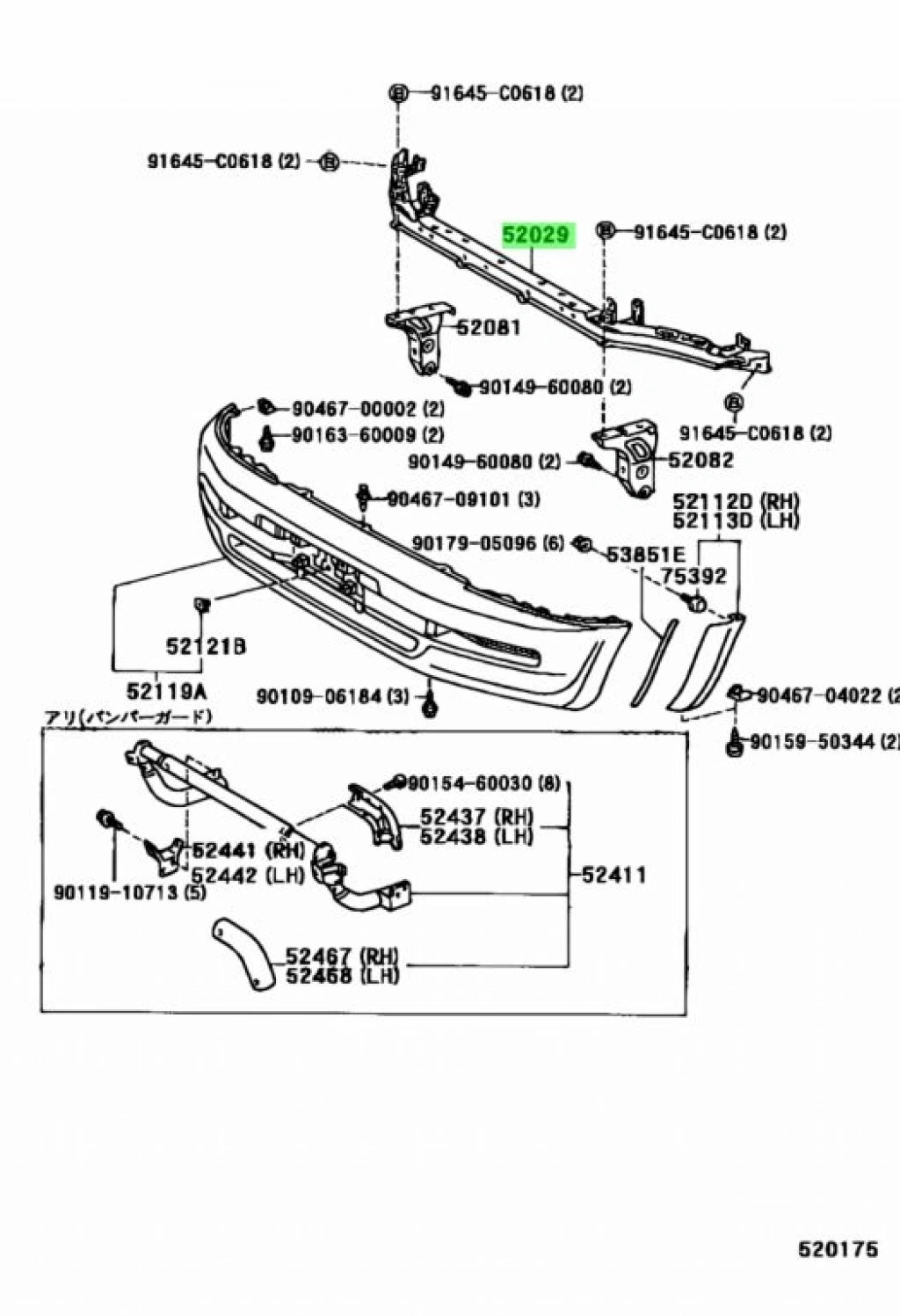 Toyota Rav 4 Ön Tampon Demiri Üst 1994-1997 (Oem No: 5202942050)