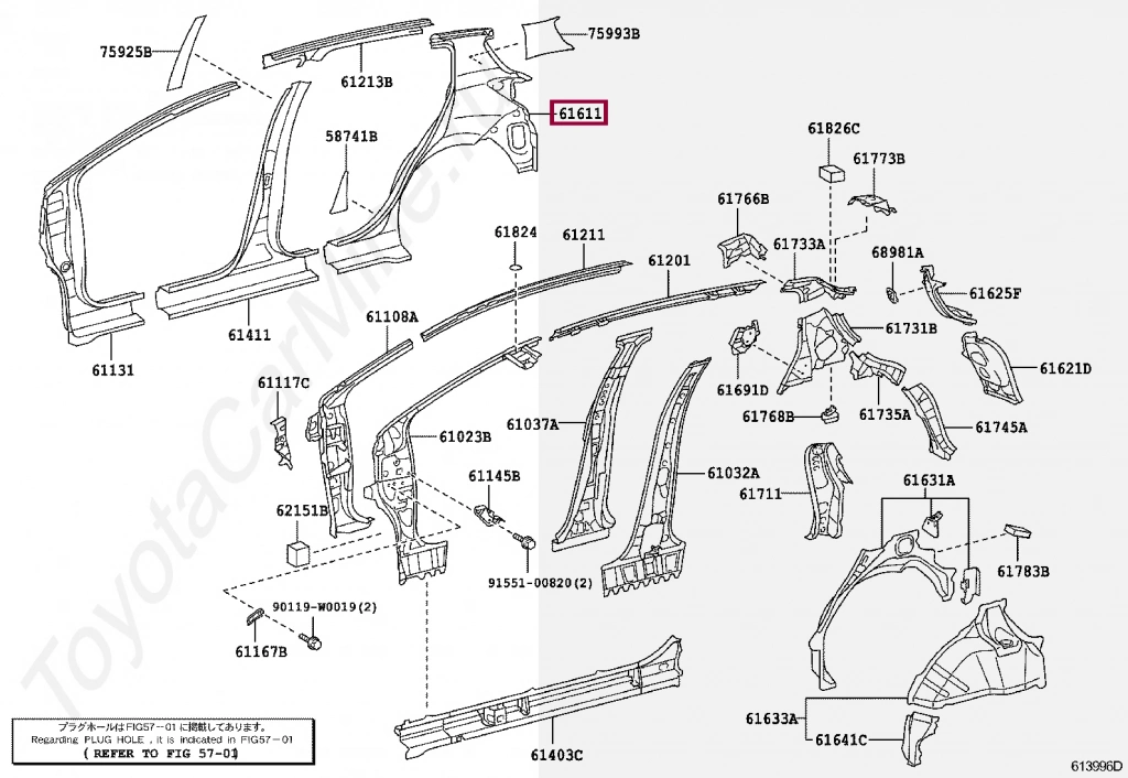 TOYOTA YARIS- 2006-2011; ARKA ÇAMURLUK SOL (TAVANA KADAR) YAKIT DEPO KAPAĞI DELİKLİ (TW) Oem No: (61601-0D130)