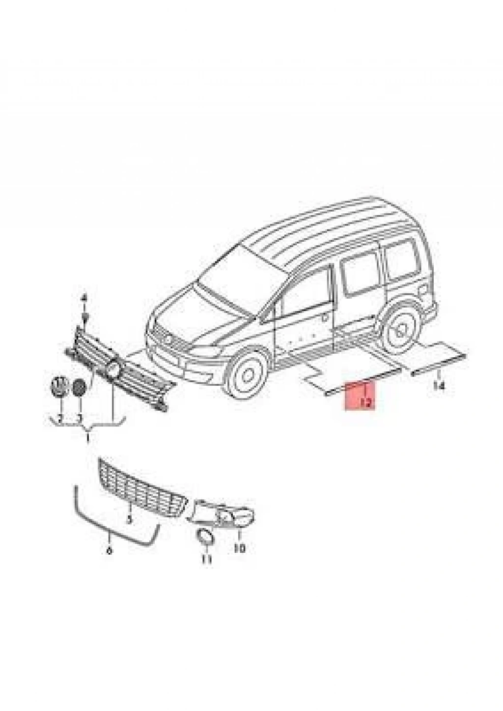 1996-2010 Volkswagen Caddy Ön Kapı Bandı Sol (Pleksan) (Adet) (Oem No:2K0853515E9B9)
