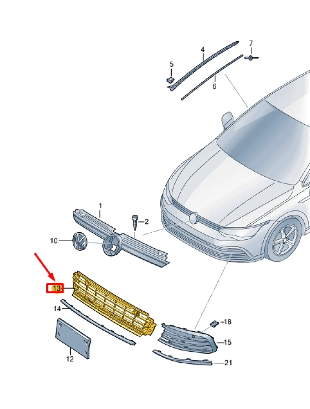Volkswagen Golf Vııı Ön Tampon Panjuru Kapalı Desenli Sensör Kuşak Delikli 2020- (Oem No: 5H0853677G9B9)